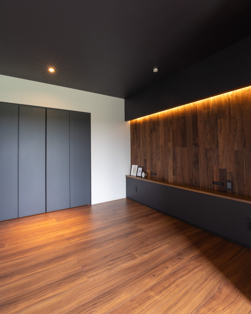 落ち着いた色合いと間接照明で、家族みんなが心からリラックスできる空間に。